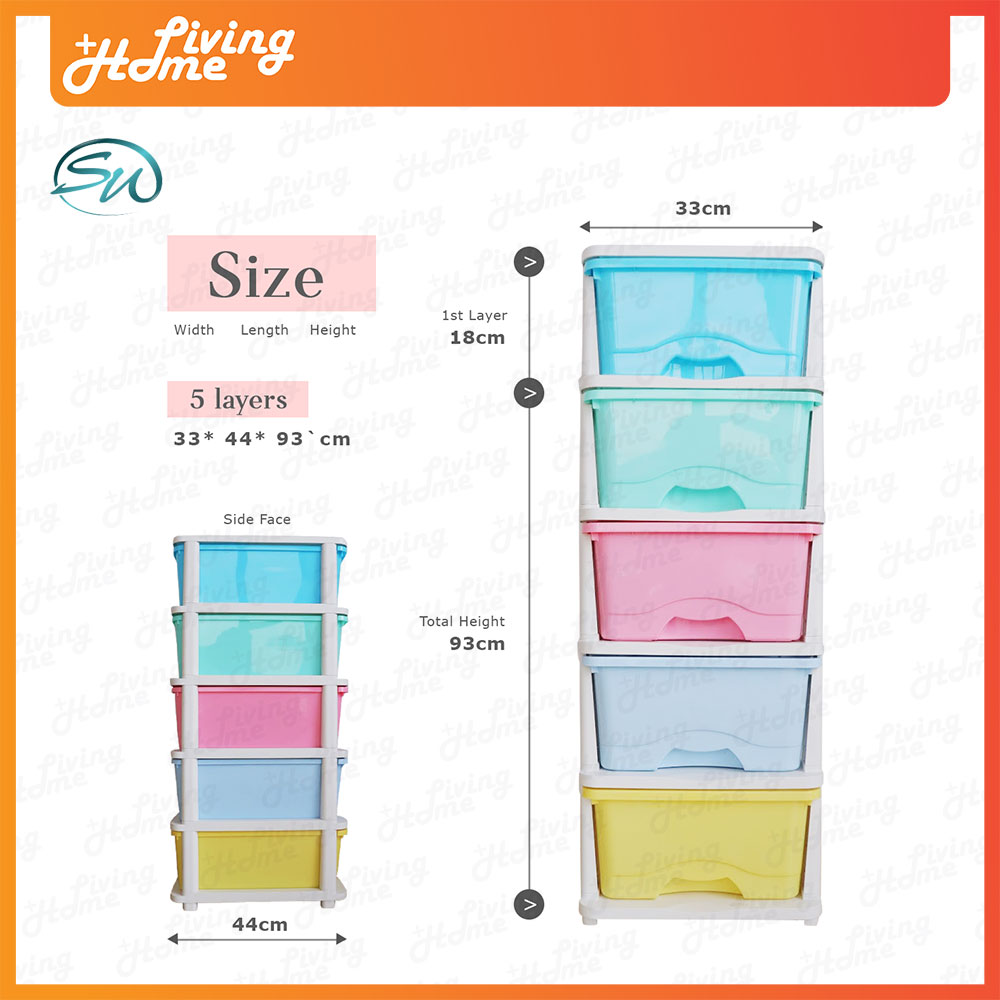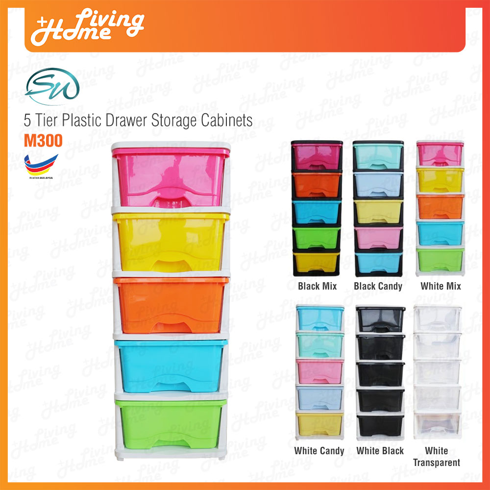 5 Tier Plastic Drawer Storage Cabinets ~ SW-M300 Plastic Drawer